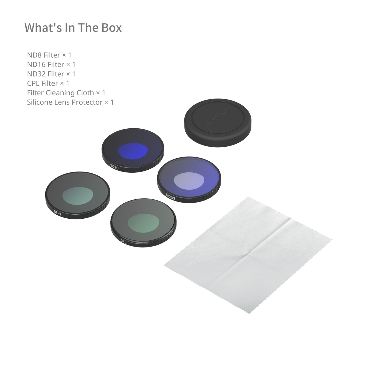 Ta komplet filtrov vključuje filter ND8, filter ND16, filter ND16 in filter CPL, ki zagotavljajo optimalno snemanje v različnih okoljih in obogatijo vaše posnetke z živimi barvami. Filter ND8 je idealen za svetle dnevne razmere, saj omogoča uravnoteženo osvetlitev in naravne slike; filter ND16 je zasnovan za zmerno osvetlitev, ki pomaga ohraniti podrobnosti v svetlih in temnih delih slike; filter ND32 je primeren za močne svetlobne razmere ali kreativne dolge osvetlitve, kot so svetlobne sledi in učinki zamegljenosti zaradi gibanja; filter CPL pa učinkovito odpravlja neželene odseve z nekovinskih površin, kot sta voda in steklo, hkrati pa izboljša vidljivost pod vodo in skozi okno.