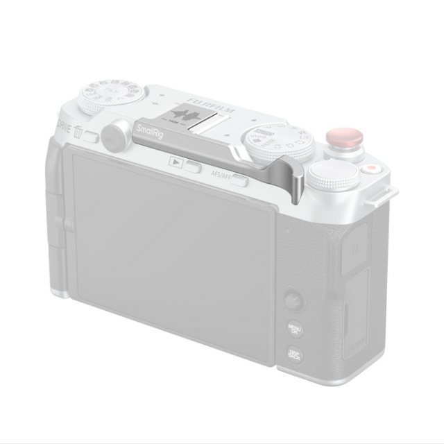 Držalo za palec SmallRig za fotoaparat FUJIFILM X-M5 (srebrno) 4877 izboljša vašo fotografsko izkušnjo, saj zagotavlja varen in udoben oprijem. Njegova ergonomska oblika in ekskluzivna blagovna znamka FUJIFILM dodajata edinstven pridih, hkrati pa zagotavljata zaščito in preprosto uporabo.