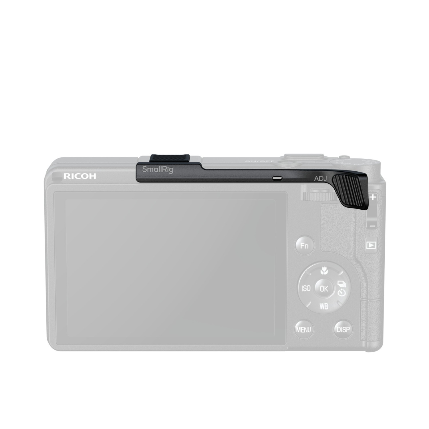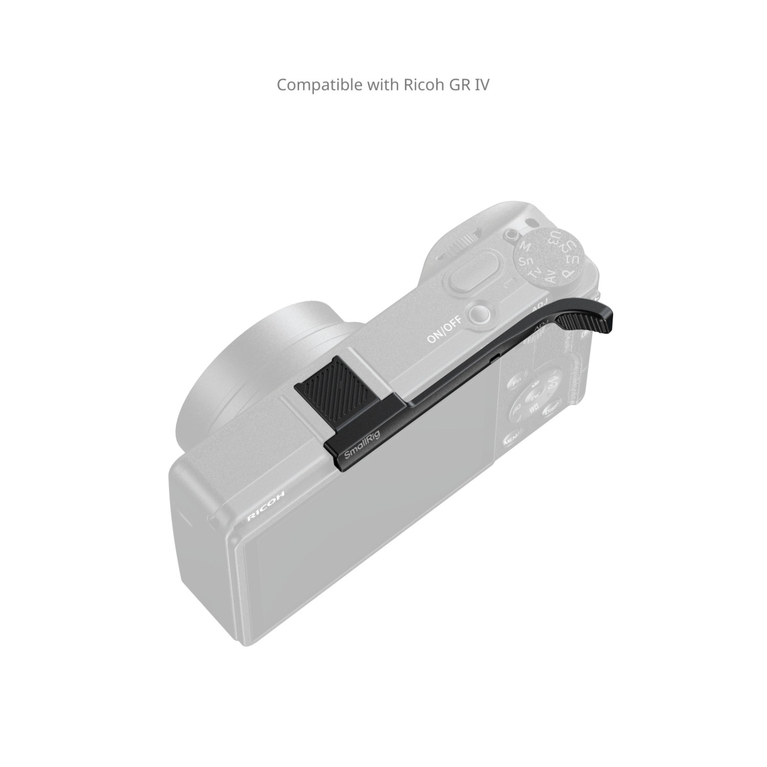 SmallRig 5688 Thumb Grip za Ricoh GR IV je lahek dodatek, ki se namesti na čevlju in izboljša oprijem ter enoročno rokovanje, saj zagotavlja udobno konkavno oporo za palec, ne da bi oviral upravljanje kamere.