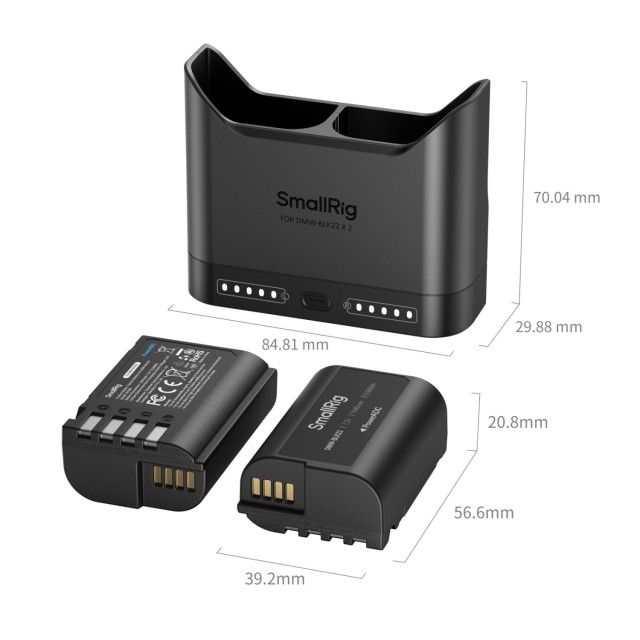 SmallRig Turbo polnilni komplet za baterije DMW-BLK22 za kamere 5487 vključuje dve visoko zmogljivi bateriji in dvo-kanalni hitri polnilnik. Ta komplet, opremljen s čipom za popolno dekodiranje, zagotavlja popolno združljivost z baterijami Panasonic DMW-BLK22, odpravlja pojavna opozorila in podpira prikaz napajanja v kameri ter uporabo originalnega polnilnika.