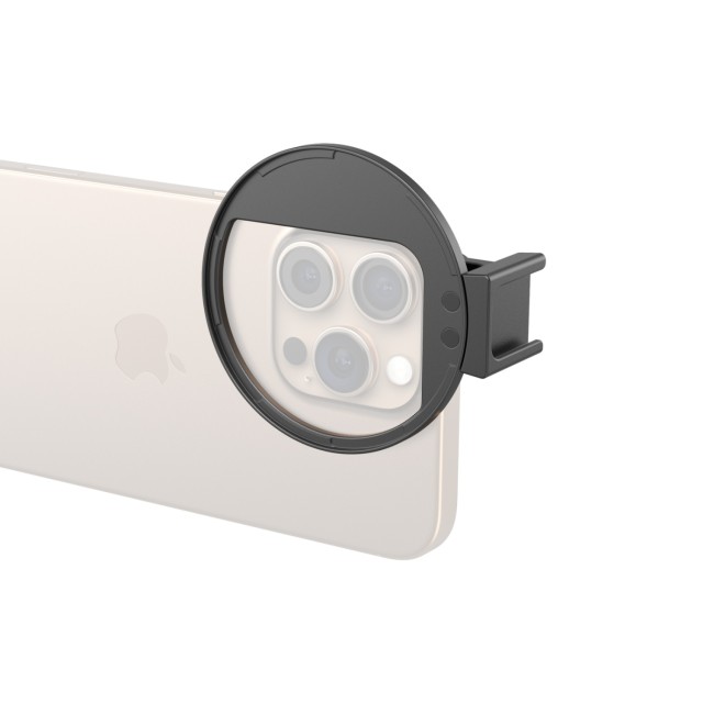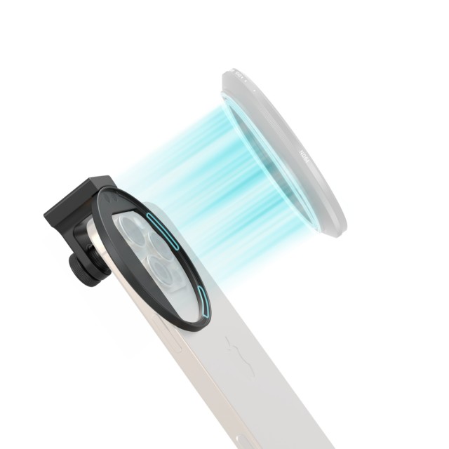Adapter ima magnetno pritrditev in omogoča nemoteno namestitev in zamenjavo filtrov. Zaklepni gumb filter varno pritrdi na telefon za večjo stabilnost, medtem ko obloga proti praskam na obeh straneh ščiti telefon. Razpon odpiranja objemke je 6-15,8 mm, kar zagotavlja združljivost z različnimi modeli telefonov, čeprav ga je priporočljivo uporabljati brez ovitka za telefon. Poleg tega mu je priložen adapter z navojem za univerzalno združljivost s filtri z navojem 67 mm.