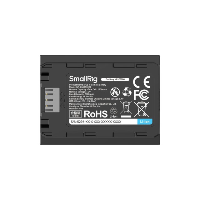 Baterija SmallRig 5296 NP-FZ100 USB-C je litij-ionska baterija z visoko zmogljivostjo 2600 mAh, zasnovana za brezžične in kinematografske kamere Sony, ki omogoča hitro polnjenje prek USB-C, popolno dekodiranje kamere brez pojavnih oken ter enako velikost in zanesljivost kot originalna baterija Sony.