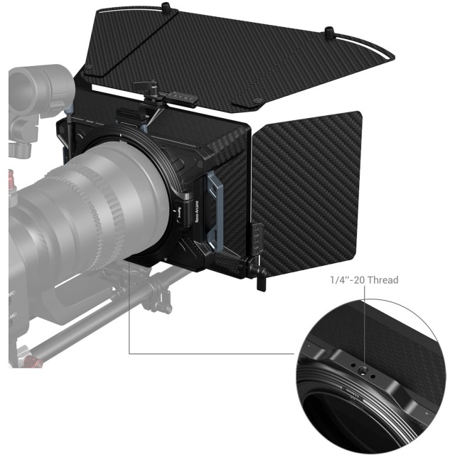 Ta osnovni paket vključuje tudi pladenj za filtre 4 x 5,65", pokrovček objektiva, zgornjo zastavico in dve stranski zastavici za dodatno prilagajanje močni sončni svetlobi ali polnilnim lučem. Zaradi dvojnih 15-milimetrskih podpornih palic je matrika združljiva s sistemi podpornih palic. Vso dodatno opremo in matriko lahko shranite v vrečko za shranjevanje, da jo lahko prepeljete na naslednje snemanje.