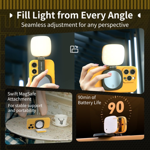 · Enostavna združljivost z MagSafe: LED-svetlobo lahko takoj pritrdite in odstranite s tehnologijo MagSafe, ki zagotavlja varno in enostavno povezavo z združljivimi napravami . · 360° nastavljiva osvetlitev za popolno pokritost: inovativna mini glava z dvojno osjo omogoča polni 360° zasuk in ponuja raznolike kote osvetlitve…