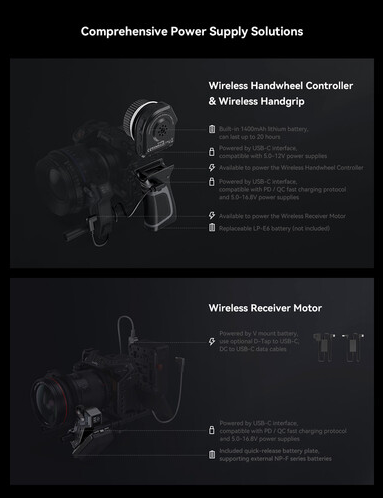 Namestite brezžični sistem za nadzor ostrenja na svojo kamero s kompletom za brezžično upravljanje ostrenja 3917B Wireless Follow Focus Controller Kit od SmallRig. Ta komplet vključuje modul za nadzor ostrenja, brezžični ročaj, adapter za ročaj in kabel USB-C. Ročaj vam omogoča nadzor nad zagonom/zaustavitvijo kamere z uporabo dodatnega kabla, namesti pa se na vašo opremo za desno- ali levoročno konfiguracijo s pomočjo priloženega adapterja za ročaj. Upoštevajte, da je ta komplet za nadzor združljiv samo s komponentami brezžičnega sistema za sledenje ostrenja SmallRig. Ima 0,96-palčni OLED-zaslon z nizko porabo energije, funkcije opozarjanja z vibracijami, pomnilnik za primer izpada napajanja, ki zmanjša potrebo po ponovni kalibraciji, in se napaja z baterijo LP-E6 s podporo za polnjenje USB-C. Ergonomski ročaj vključuje rebraste gume za udobje in protivrtljive 1/4"-20 navoje, izdelan je iz aluminija, ABS, nerjavečega jekla in silikona za večjo vzdržljivost.