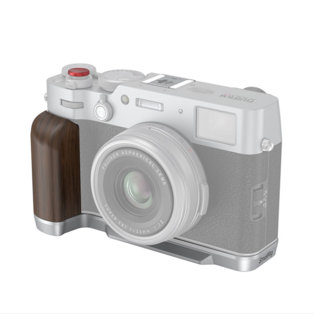 SmallRig leseno držalo v obliki črke L za fotoaparat FUJIFILM X100VI/X100V (srebrno) ima ergonomsko leseno obliko, ki povečuje udobje in stabilnost pri držanju. Ta lahek ročaj (77 g/2,7oz) ima ploščico za hitro sproščanje Arca-Swiss za enostavno namestitev, vključuje pa tudi gumb za sprožitev zaklopa in pokrovček za vročo čeveljnico z edinstvenim odtisom FUJIFILM.