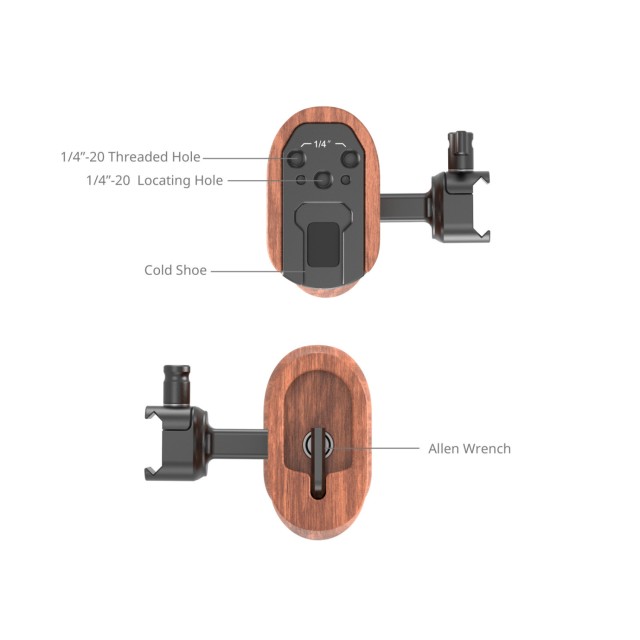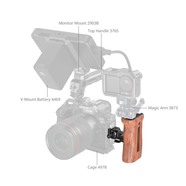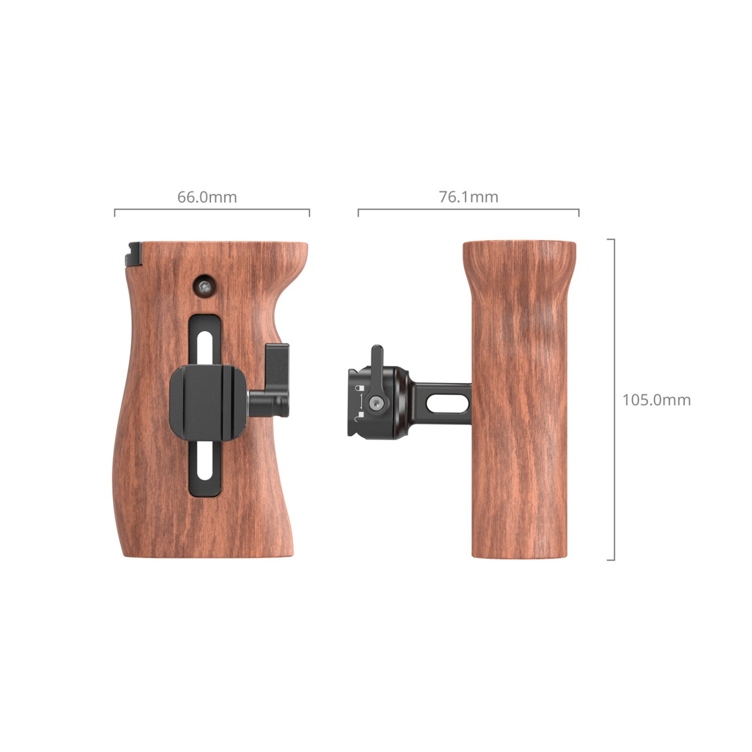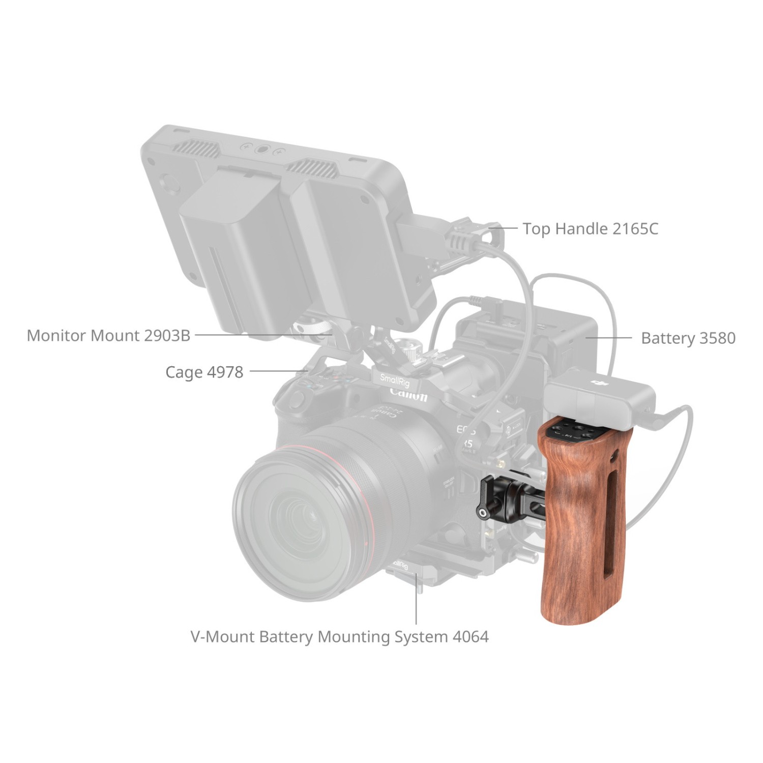 Leseni stranski ročaj SmallRig z NATO-pritrdilom 2187C je zasnovan za udobno snemanje iz roke. Z NATO-pritrdilom in imbus ključem se varno pritrdi na okvirje z NATO-tirnicami. Ročaj se z imbus ključem enostavno razstavi, kar omogoča hitro preklapljanje med uporabo na levi in desni strani, poleg tega pa omogoča vertikalno nastavitev za optimalno upravljanje. Na vrhu ročaja je pritrditev za mikrofon ali bliskavico, skupaj z dvema luknjama z navojem 1/4"-20 in eno luknjo za pritrditev magic armov ali nosilcev za monitorje.