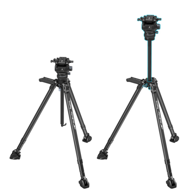 SmallRig PotatoJet Tribex Hydraulic Carbon Fiber Tripod Kit 4259 je visoko zmogljiv komplet stativa, zasnovan za snemalce, ki zahtevajo natančnost in vzdržljivost. Ta komplet združuje hidravlično fluidno glavo za gladke in nadzorovane gibe ter noge iz ogljikovih vlaken za lahko, a trdno oporo. Fluidna glava zagotavlja nastavljiv upor za osi obračanja in nagiba, kar zagotavlja enostavno sledenje premikajočim se predmetom in gladke prehode med kamerami.