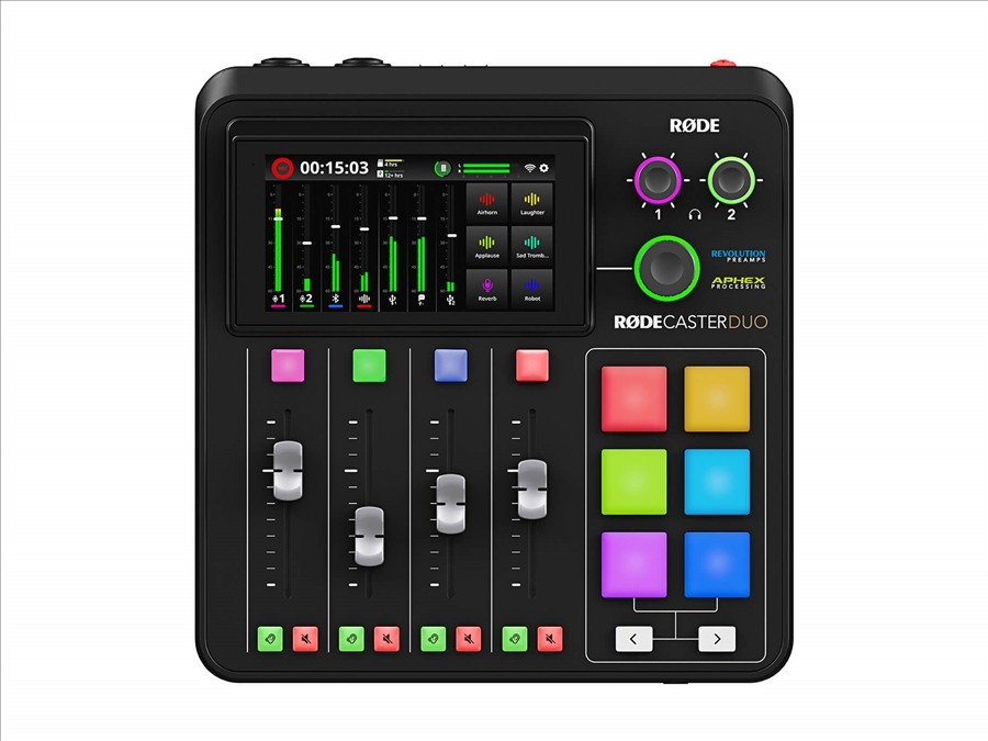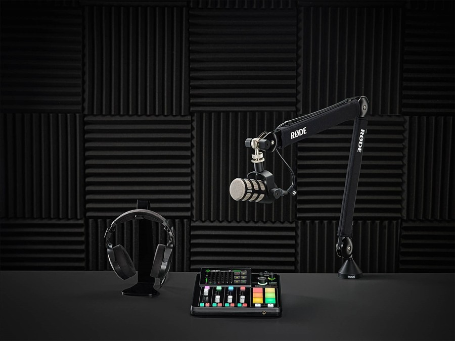 kompakten studijski mešalnik za podcasting in streaming, 2 analogna vhoda – mikrofon/linija/instrument, 2x izhod za slušalke, 1x vhod za slušalke, izhod za avdio monitorje, 2x USB-C, Wi-Fi, Ethernet, Bluetooth®, sprejemnik za RØDE wireless, 4 fizični in 3 virtualni faderji, zaslon LCD na dotik, procesorji APHEX®, RØDE FX efekti
