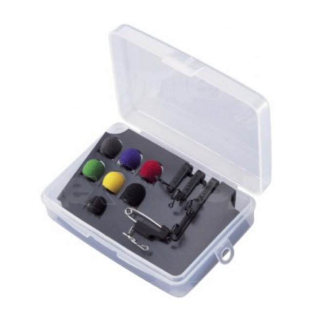 Vsebina paketa: Vključuje štiri vrste držal za mikrofon (vodoravna/enakomerna vrsta, navpična/enakomerna vrsta, vodoravna/dvojna vrsta in varnostni zatič), šest uretanskih vetrobranskih stekel (rdeče, rumeno, zeleno, modro, sivo in črno) ter kovinsko mrežasto vetrobransko steklo.