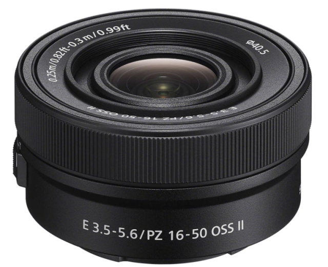 Priloženi objektiv Sony 16–50 mm OSS II ponuja prilagodljiv razpon zuma za vsakodnevno fotografiranje, od širokokotnega vloganja do podrobnih posnetkov iz bližine. Vgrajena optična stabilizacija v objektivu pomaga zmanjšati tresljaje kamere za bolj gladke posnetke iz roke.