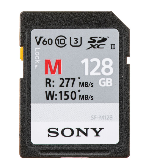 Pomnilniška kartica Sony SF-M UHS-II SDXC s kapaciteto 128 GB zagotavlja visoko hitrost delovanja z branjem do 277 MB/s in zapisovanjem do 150 MB/s, zaradi česar je idealna za snemanje videoposnetkov v ločljivosti 4K in neprekinjeno fotografiranje v serijskem načinu.