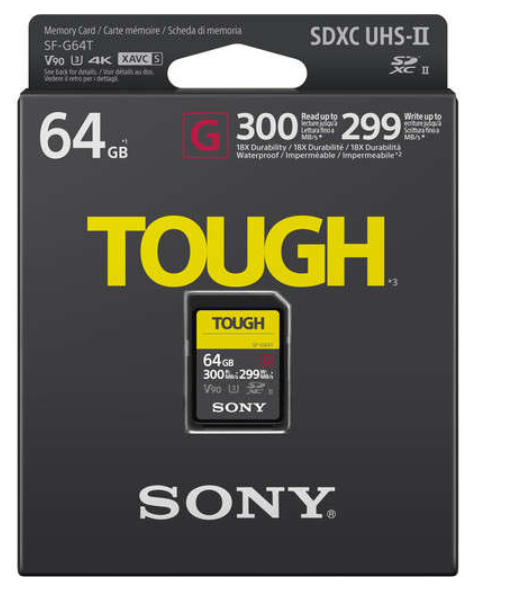 Pomnilniška kartica Sony SF-G Tough 64 GB SDXC UHS-II je zasnovana za profesionalce, ki potrebujejo največjo hitrost, zanesljivost in vzdržljivost. Z izjemno visokimi hitrostmi branja do 300 MB/s in zapisovanja do 299 MB/s omogoča hitro neprekinjeno fotografiranje ter podpira napredne formate snemanja videa, vključno z 4K, 8K in posnetki z visoko hitrostjo snemanja (HFR).