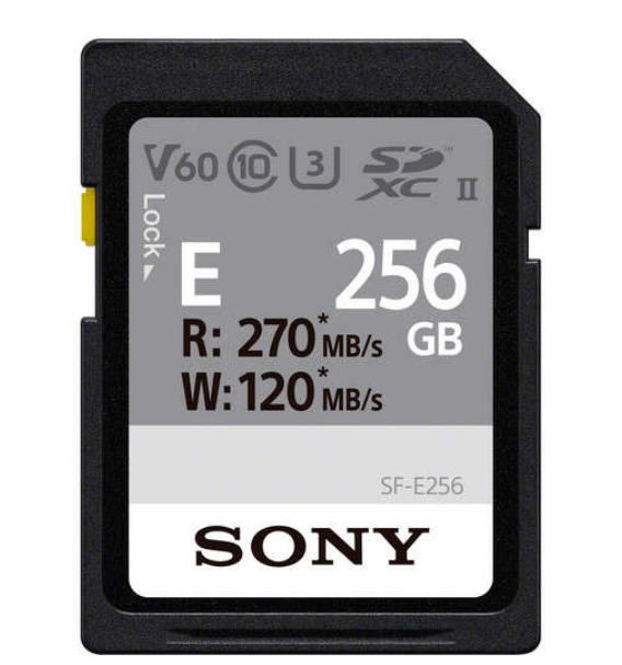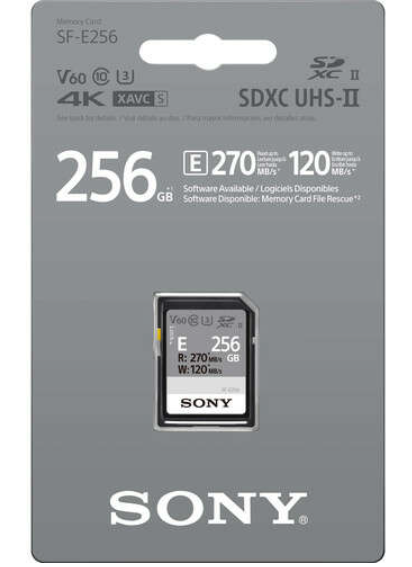 Pomnilniška kartica Sony SDXC SF-E 256 GB razreda 10 UHS-II je namenjena ustvarjalcem, ki zahtevajo hitrost, zanesljivost in veliko prostora za shranjevanje. Z napredno tehnologijo UHS-II zagotavlja impresivne hitrosti branja do 270 MB/s in hitrosti zapisovanja do 120 MB/s, kar omogoča učinkovito obdelavo fotografij visoke ločljivosti, neprekinjeno serijsko fotografiranje in snemanje videoposnetkov v ločljivosti 4K.