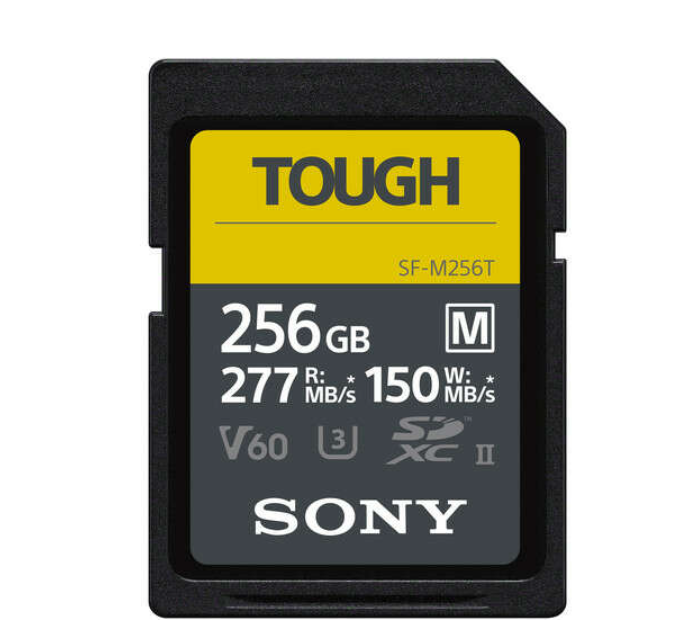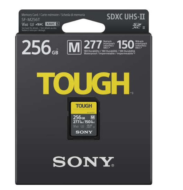 Pomnilniška kartica Sony SDXC Tough SF-M 256 GB V60 UHS-II zagotavlja visoko hitrost delovanja in izjemno vzdržljivost ter je zasnovana za profesionalno snemanje videoposnetkov v ločljivosti 4K/8K in neprekinjeno fotografiranje v zahtevnih okoljih.
