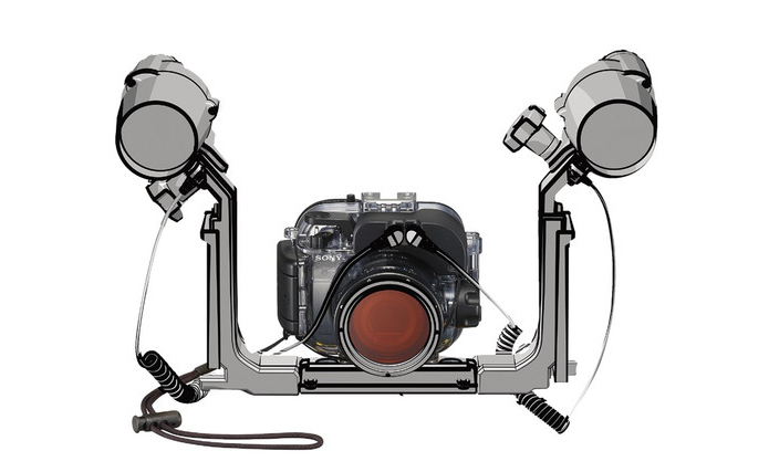 Za razširjene konfiguracije ima ohišje na vrhu nameščen hladni čevlji za dodatno opremo, kot so zunanje luči, ter tri navoje 1/4"-20 na dnu za pritrditev ročajev, pladnjev ali stabilizacijskih naprav. Ohišje je izdelano iz trpežne oblikovane plastike, zato je lahko in trpežno – idealno za potapljanje, snorklanje in raziskovanje podvodnega sveta.