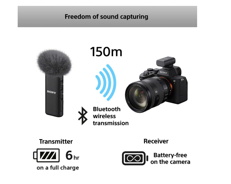 Mikrofon je zasnovan za udobje in ima intuitivne vgrajene upravljalne elemente, vključno z atenuatorjem za hitro prilagajanje ravni in varnostnim načinom snemanja, ki zajema zvok na dveh ravneh hkrati (-0 dB in -20 dB), da prepreči popačenje. Ko je povezan z združljivimi fotoaparati Sony, se sprejemnik lahko napaja neposredno prek vmesnika Multi Interface (MI), kar odpravlja potrebo po dodatnih kablih ali baterijah.