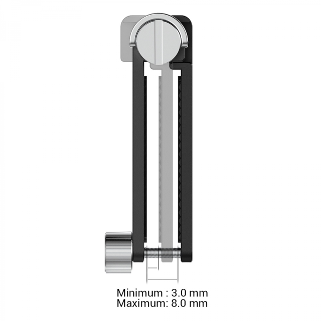 Sponka za kabel mobilnega telefona SmallRig je zasnovana za njihovo standardno univerzalno kletko za mobilni telefon in omogoča priključitev napajalnega kabla na telefon. Sponka je izdelana iz aluminijeve zlitine in jo je mogoče pritrditi na stran kletke z obročnim vijakom 1/4"-20D, tako da lahko kable, kot so USB Type-C, Lightning in drugi, z zategovanjem palčnega vijaka pritrdite na mesto. Primerna je za kable debeline od 0,1 do 0,3 mm in ima mehko notranje oblazinjenje, ki pripomore k večji učinkovitosti zaklepanja.