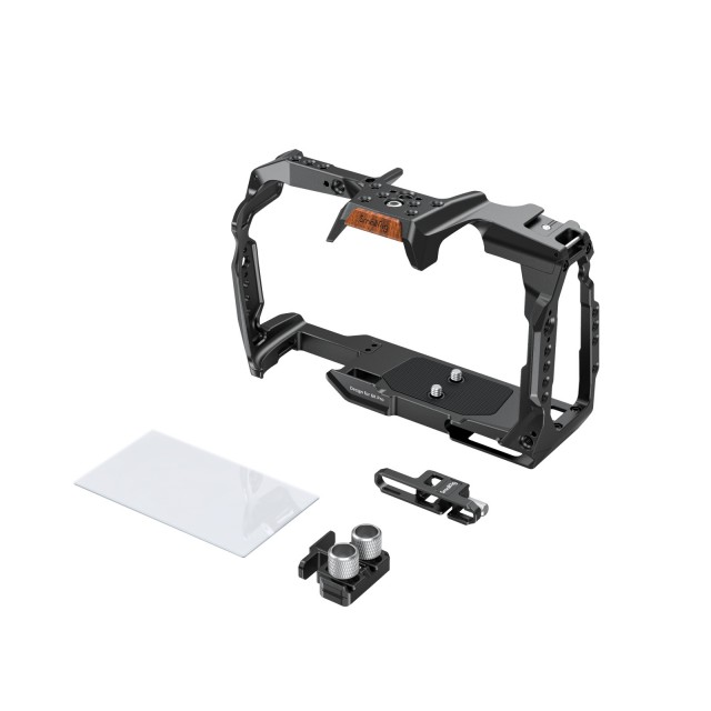 Standardni komplet dodatne opreme SmallRig za BMPCC 6K Pro 3298 zagotavlja robustno kletko za zajca iz aluminijaste zlitine z več luknjami z navojem 1/4"-20 za namestitev dodatne dodatne opreme fotoaparata. Komplet ima vgrajeno objemko za pogon SSD T5 in objemko za kabel USB-C, ki jo lahko dodatno zaklenete z gumbom, da preprečite nenamerno prekinitev povezave med snemanjem. Njegovi dve utrjeni foliji je mogoče z uporabo elektrostatične adsorpcije enostavno prilepiti na zaslon in tako zaščititi fotoaparat.