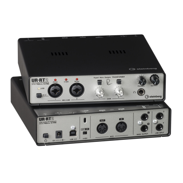 Steinberg UR-RT2 je zvočni vmesnik s 4 vhodi in 2 izhodoma, povezljivostjo MIDI in transformatorji Rupert Neve Designs na prvih dveh vhodih. S kombinacijo visokokakovostnih predojačevalnikov D-PRE in transformatorjev Rupert Neve Designs UR-RT zagotavlja muzikalno in izrazitejšo barvo zvoka, bogato s harmonskimi frekvencami, kar koristi na primer vokalom, akustični kitari in drugim instrumentom s širokim dinamičnim razponom.