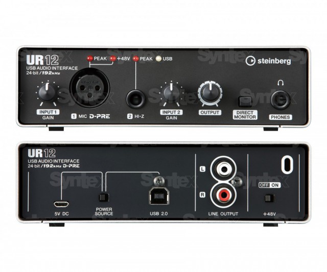 Profesionalna zunanja zvočna vrstica UR12 je namenjena predvsem neodvisnim umetnikom ali mobilnim snemalcem, kjer bo kljub svoji cenovni dostopnosti zagotavljala vrhunsko kakovost zvoka in zadosten nabor funkcij. Podpira frekvence vzorčenja do 192 kHz, ponuja odlično izdelavo in elektroniko ter podpira tudi iPade. Na sprednji plošči boste našli Neutrik XLR priključek za priklop mikrofona, za katerim je vključen visokokakovostni predojačevalnik Yamaha D-PRE z vezjem razreda A in fantomskim napajanjem. Drugi kanal je izveden kot visokoimpedančni priključek za priključitev glasbenih instrumentov, kot so električne kitare. Vsak kanal ponuja neodvisno spreminjanje ojačitve in indikator vrha, seveda pa so na voljo tudi izhod za slušalke, nadzor ravni izhodnega signala in stikalo Direct Monitor za povezavo vhodov z izhodi brez zakasnitve. Zadnja plošča je opremljena z analognimi izhodi s priključki RCA/Cinch, enim priključkom USB 2.0 in enim priključkom mini USB za priključitev dodatnega napajalnika. Priložena je licenca Cubase AI.