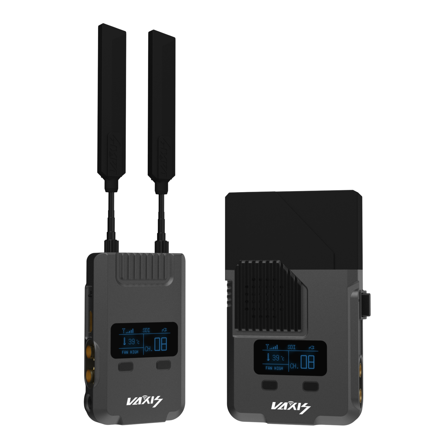 Vaxis Storm 800: brezžični video sistem brez zakasnitve. Prenos nekomprimiranega 1080p HD do 800 ft z manj kot 1 ms zakasnitvijo. Profesionalni SDI/HDMI prenos za filmarje, oddajanje in produkcijo v živo. Vključuje podporo za časovni kod in možnosti L-serije/V-mount. Zanesljiva rešitev za spremljanje videa na snemalnem prizorišču.