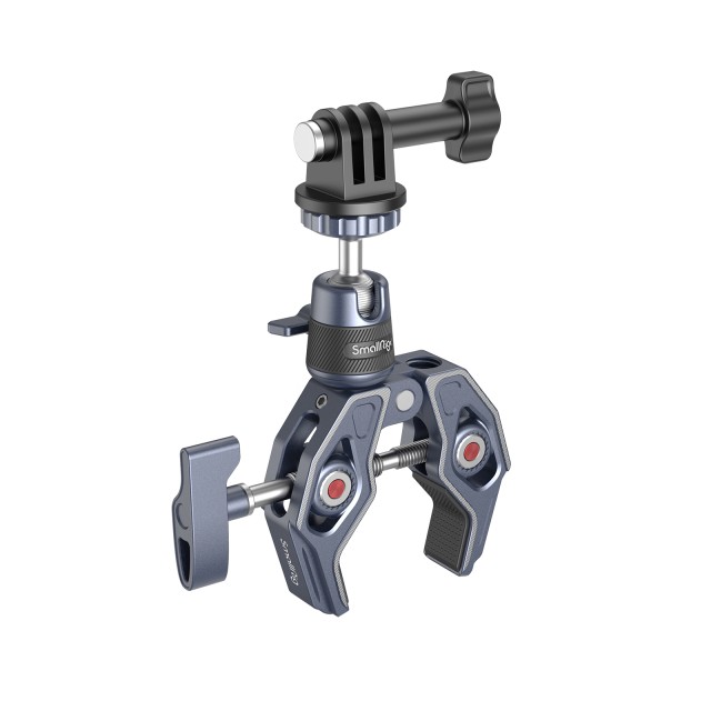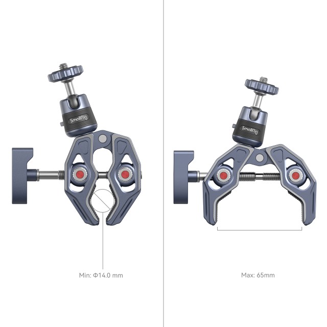 Super objemka SmallRig s 360-stopinjskim držalom za akcijske kamere 4102 je izdelana iz aluminijeve zlitine in nerjavečega jekla, anodizirana in izrezana CNC za večjo robustnost in vzdržljivost. Ima skeletno konstrukcijo in vpenjalno sponko z močnejšo silo vpenjanja ter široko združljive luknje z navojem 1/4"-20, luknje z navojem 3/8"-16 in luknje za pozicioniranje ARRI 3/8"-16. S prijemalom, ki podpira palico z najmanjšim premerom 14 mm in površino z največjo debelino 65 mm, lahko kamere, monitorje, video luči LED itd. hitro pritrdite na okrogle cevi, mize, krmilo, stative in stabilizacijske obroče za ročno upravljanje.