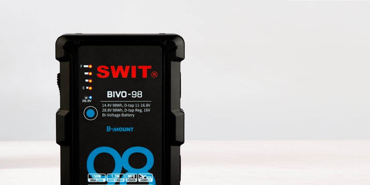 BIVO-98 je 14,4 V (11-16,8 V) in 28,8 V (22-33,6 V) dvonapetostna baterija B-mount za kamere ARRI in različne baterije, združljive z običajnimi napetostnimi kamerami in kinematografskimi aparati. Baterija bo prepoznala vrednost uporov ID-pina plošče B-mount in nato oddajala 14,4 V ali 28,8 V brez nevarnosti zlorabe.