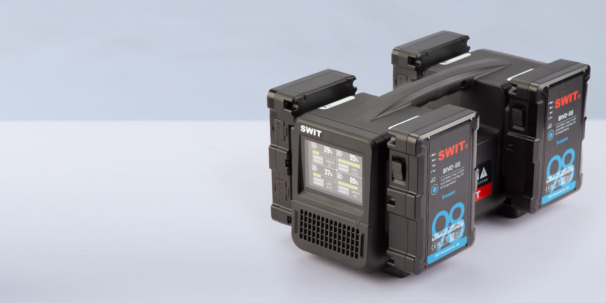 Na polnilniku SWIT PC-P461B B-mount lahko hkrati polnite 4x BIVO-98 pri 33,6 V in 44W hitrem polnjenju. Polnilec bo potreboval približno 3 ure, da popolnoma napolni baterije 4x BIVO-98.