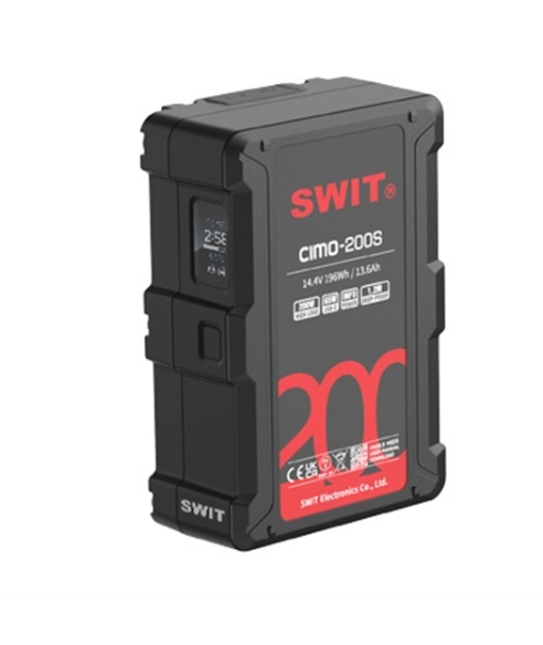 SWIT CIMO-200S je 196Wh Cine V-mount baterija z visoko zmogljivostjo, USB-C PD polnjenjem in OLED zaslonom za prikaz delovnega časa, zasnovana za profesionalne kinematografe, ki potrebujejo zanesljivo, prenosno napajanje za kamere, luči in dodatke na snemalnem prizorišču.