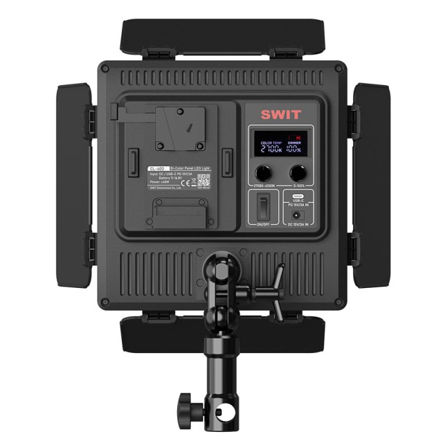 Za enostavno namestitev CL-40D podpira več virov napajanja prek V-mount baterije, USB-C in 15 V DC. Paket vključuje AC-DC adapter.