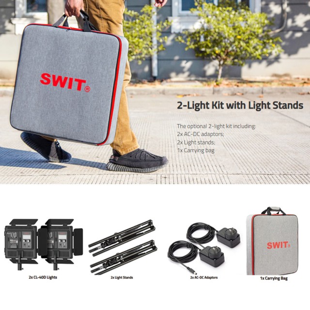 SWIT CL-40D 2KIT - 2xCL-40D z 2x 40 W visoko svetlimi, ultra prenosnimi, enostavno nastavljivimi, brezventilatorskimi, dvobarvnimi panelnimi svetilkami in stativi