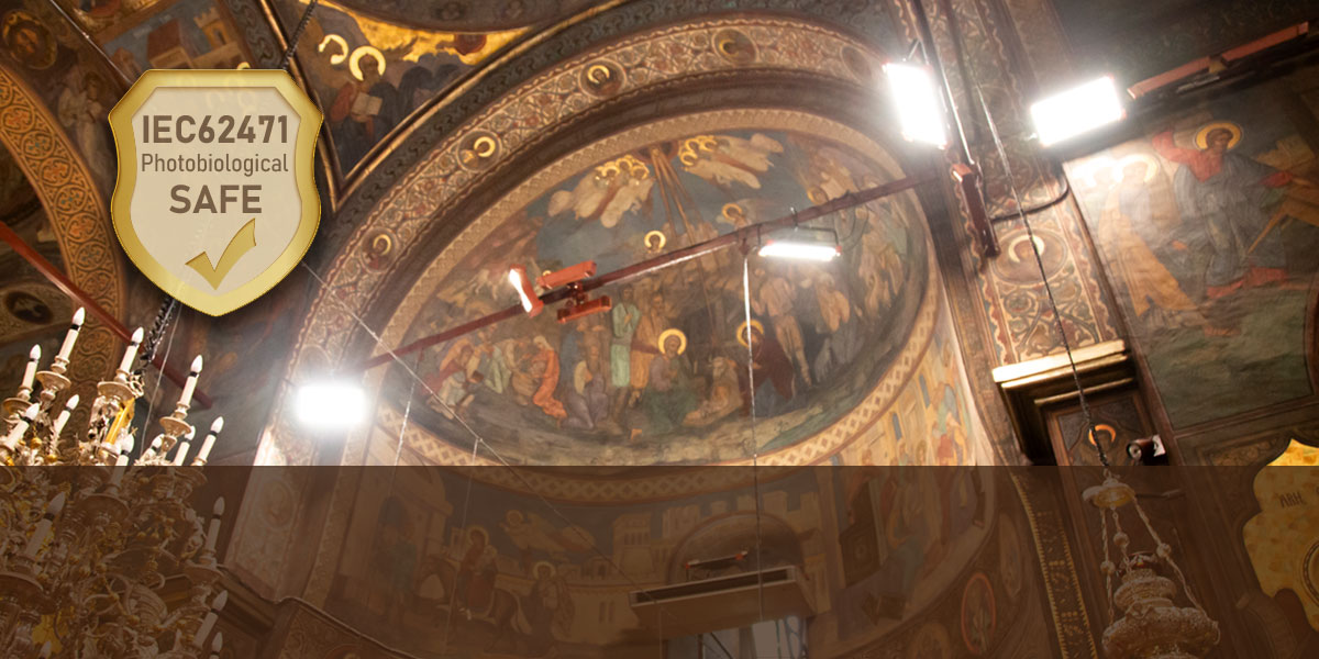 Svetloba je bila testirana in certificirana kot „izvzeta – brez fotobiološke nevarnosti“ v skladu s standardom IEC 62471:2008, brez tveganja ultravijoličnega sevanja, visokoenergetske modre svetlobe in utripanja. Na posebnih lokacijah, kot so cerkve, muzeji in stare zgradbe, lahko uporaba te svetilke učinkovito prepreči bledenje in luščenje stenskih poslikav, s čimer ščiti kulturno dediščino.