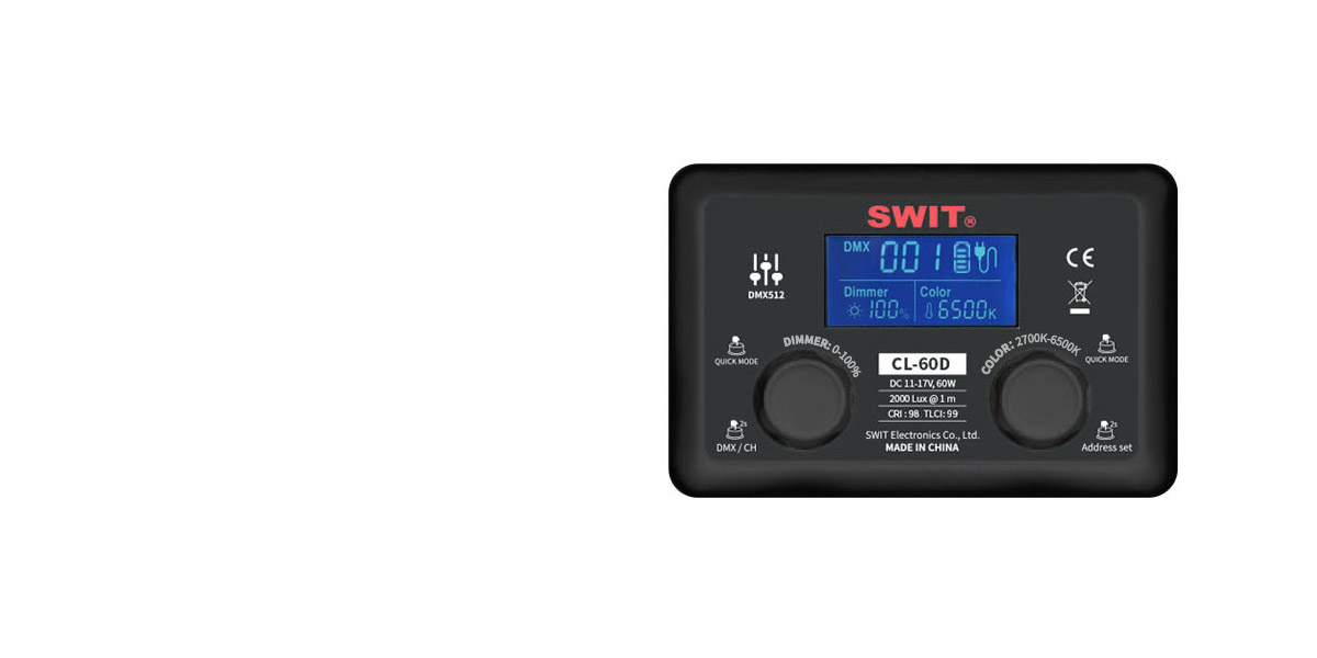 CL-60D ima moč 60 W, svetilnost 2000 Lux na razdalji 1 meter (v sredini), podpira 0 do 100 % PWM digitalno zatemnitve, gladko in brez utripanja.