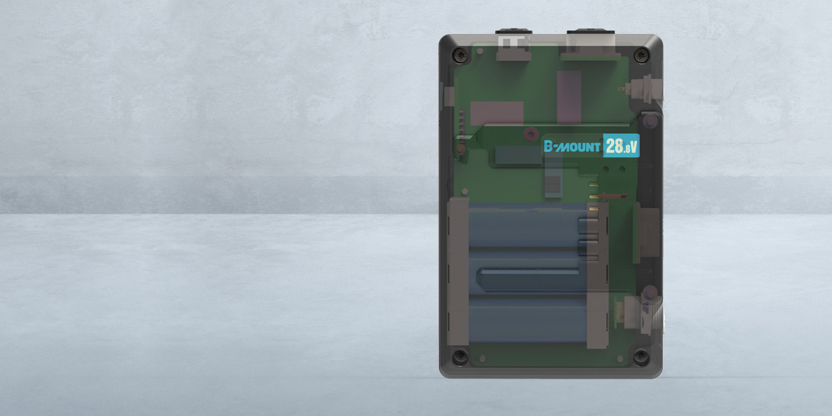 Ko odstranite baterijo B-mount, notranje celice zagotavljajo reguliranih 28 V za napajanje kamere.