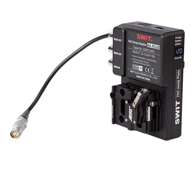 SWIT KA-R31B B-mount Hotswap Plate je profesionalna rešitev za distribucijo napajanja in signala, zasnovana posebej za kamere ARRI ALEXA MINI in MINI LF. Opremljena je z vgrajenimi rezervnimi baterijskimi celicami, 28-voltnim reguliranim izhodom in distribucijo SDI, kar omogoča pravo vročo zamenjavo brez izklopa kamere.