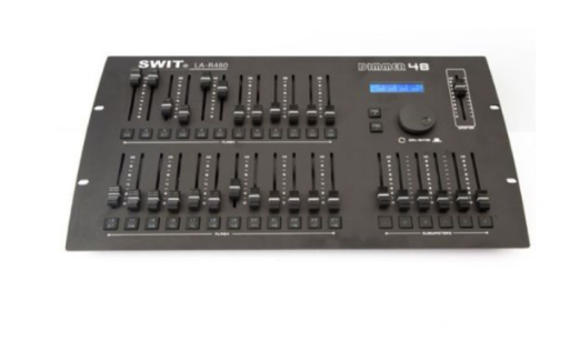SWIT LA-R480 je 48-kanalna kaskadna DMX svetlobna konzola, zasnovana za profesionalno upravljanje osvetlitve odra in studia. Opremljena je z 24 kanalskimi drsniki s stikali A/B, 6 podrejenimi drsniki in glavnim drsnikom, ki omogočajo natančno in prilagodljivo upravljanje do 192 kanalov, ko so povezani v verigo.