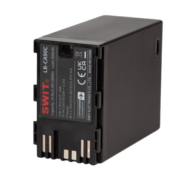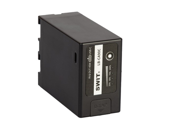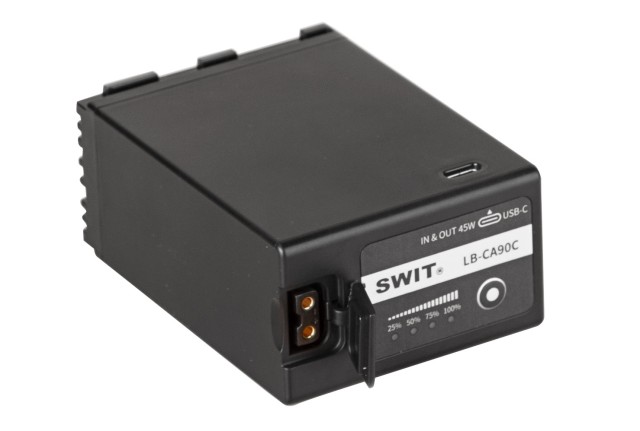 LB-CA90C je visokozmogljiva baterija Canon BP-A z izhodom D-tap in 45W vhodom/izhodom USB-C za fotoaparate Canon EOS C70, C200, C300MK2, C500MK2, XF605, XF705.