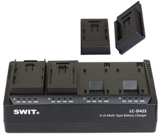 SWIT LC-D421U KIT je 4-kanalni polnilnik baterij DV, ki je opremljen s štirimi polnilnimi ploščami Sony BP-U, kar omogoča hkratno in učinkovito polnjenje do štirih baterij DV z možnostjo zamenjave plošč.