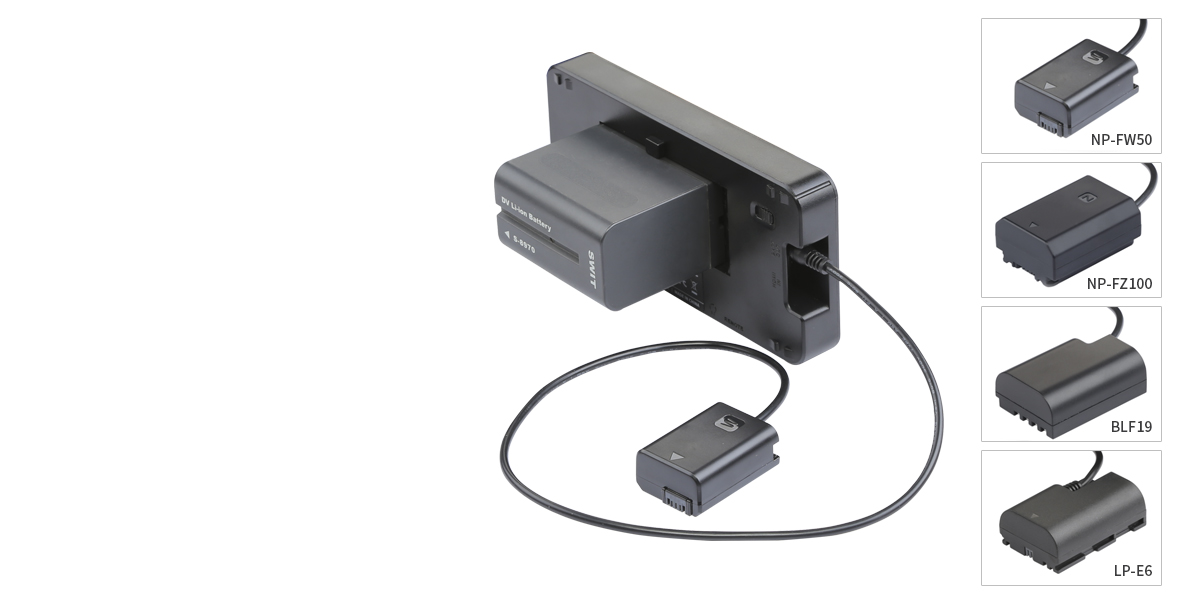 SWIT MA-55C2 je Sonyjev adapter za lažno baterijo NP-FZ100 za monitor SWIT CM-55C 4K HDMI in je namenjen napajanju zunanjih naprav z monitorja, npr. Sonyjevih ?7III, ?7RIII ali ?9. Če se monitor napaja iz baterije, lahko z vtičnico BATT OUT napajate fotoaparate iz baterijskega vira enosmernega toka z uporabo adapterjev za navidezne baterije.