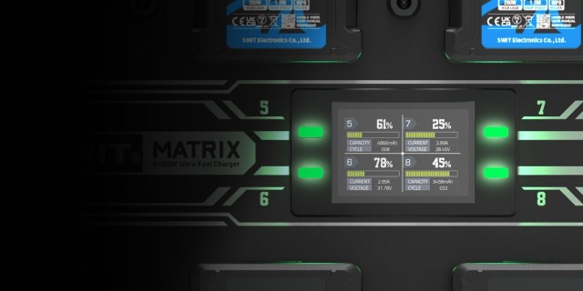 Na splošno MATRIX-B8 združuje visoko učinkovitost polnjenja, možnost hkratnega polnjenja več baterij in prilagodljive možnosti namestitve, kar ga uvršča med nepogrešljiva orodja za upravljanje velikih količin profesionalnih baterijskih paketov z vrhunsko zmogljivostjo hitrega polnjenja.