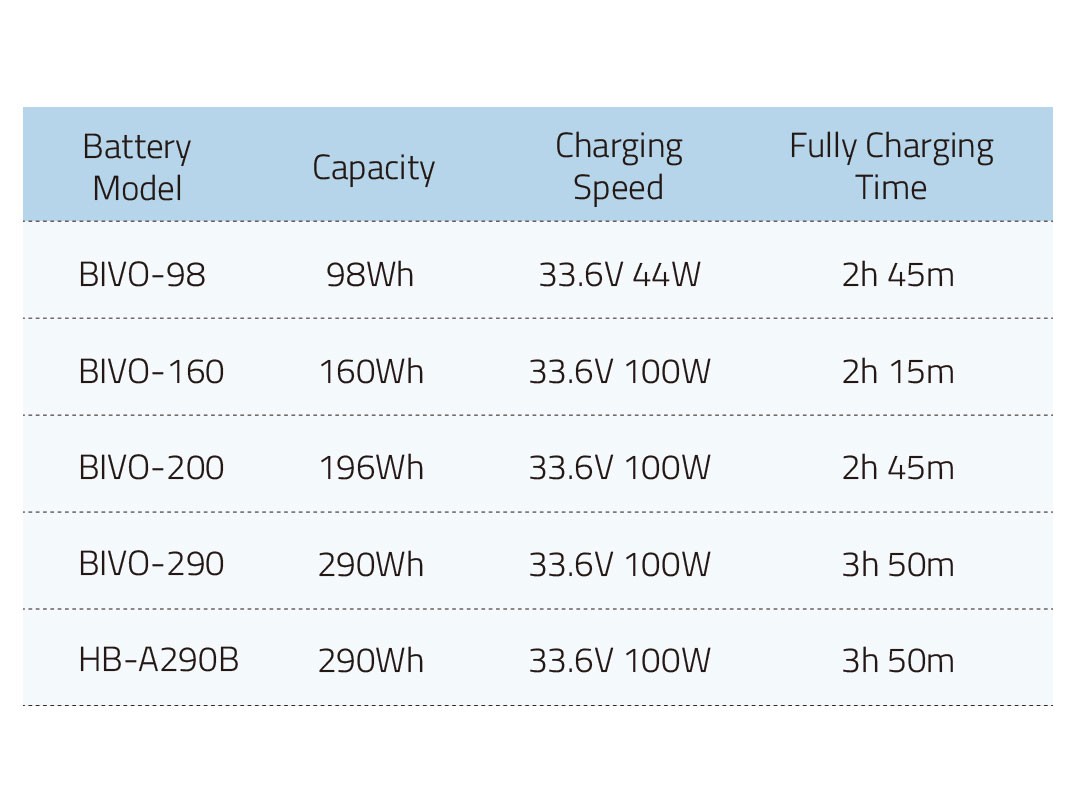 Vsak kanal zagotavlja izhodno enosmerno napetost 33,6 V z največjim tokom do 3 A pri polnjenju baterij z visoko zmogljivostjo, ki so ocenjene na 160 vatnih ur ali več. Za baterije z manjšo zmogljivostjo, manjšo od 160 vatnih ur, polnilnik samodejno prilagodi izhodni tok na 1,5 A na kanal, da zagotovi optimalno polnjenje. Ta zasnova z dvojnim izhodnim tokom uravnava hitro polnjenje in varnost baterije.