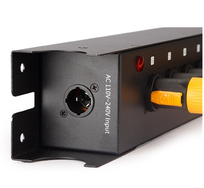 Razdelilna omarica SWIT PA-J416 1-na-4 zagotavlja stabilno in učinkovito rešitev za razdeljevanje električne energije v razsvetljavnih sistemih, še posebej primerna za televizijske postaje, gledališča, studije in prostore za neposredno oddajanje. Zaradi odlične toplotne izolacije, odpornosti proti udarcem in ognjevarnosti zagotavlja varnost in trajnost v zahtevnih okoljih. Kompaktna zasnova razdelilne omarice se ujema s strukturami montažnih nosilcev, kar omogoča enostavno obešanje na svetlobne rešetke s pomočjo kavljev za svetilke. PA-J416 je opremljen s 3-žilnim 16A samozaklepnim letalskim vtičem in ponuja varen in nadzorovan dovod energije z največjim tokom 20A in največjo obremenitvijo 3500W. Naprava podpira širok vhodni napetostni razpon (110 V do 240 V, 50 Hz), kar jo naredi vsestransko za različne napajalne sisteme. Lučka za prikaz napajanja vizualno potrjuje stanje delovanja, kar povečuje varnost in olajšuje vzdrževanje. Ta razdelilnik napajanja učinkovito upravlja več svetlobnih kablov, zmanjšuje nered in izboljšuje delovni tok v različnih profesionalnih okoljih, kot so medijski centri, studii za intervjuje in panoramski studii.