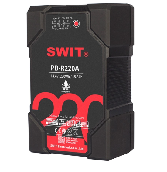 SWIT PB-R220A je 220Wh baterija Gold-Mount za težka bremena, zasnovana za zanesljivo napajanje profesionalne kamere na terenu. Z robustno konstrukcijo, podporo za visoke obremenitve in zmogljivostjo hitrega polnjenja zagotavlja dolgotrajno delovanje za zahtevno snemanje na prostem in na snemalnem prizorišču.