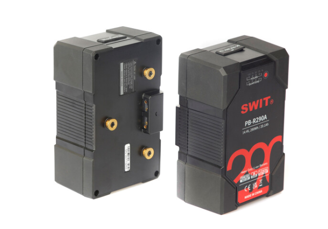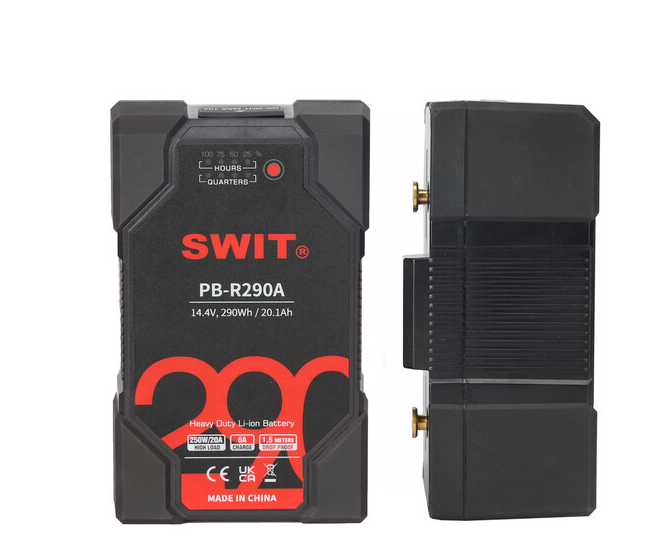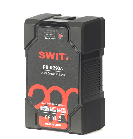 SWIT PB-R290A je 290Wh baterija Gold Mount za težka bremena, zasnovana za ENG in cine kamere, ki zagotavlja konstantno obremenitev 250W / 20A, dolgo delovanje, hitro polnjenje in robustno konstrukcijo, odporno proti padcem, za profesionalna produkcijska okolja.
