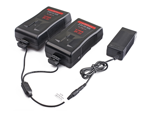 PC-U130B2 je sestavljen iz napajalnega modula AC-DC in kabla z dvema glavama D-tap DC za povezavo z vtičnico D-tap na baterijah. Tako lahko polnite dve bateriji skupaj. Polnilec ponuja skupno 14-16,8 V enosmernega toka in 3 A hitrega polnjenja.