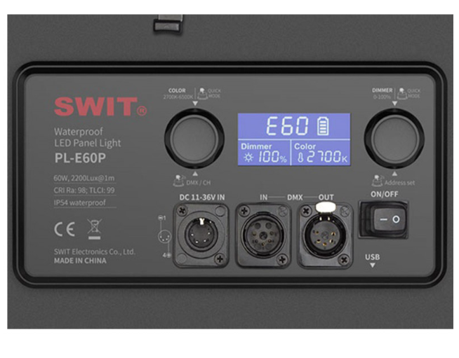 SWIT PL-E60P 3. generacija naravno mehke LED-svetilke združuje napredno optično tehnologijo s profesionalno zmogljivostjo v ultra tankem in vodotesnem dizajnu. Z močjo 60 W mehke, enakomerno porazdeljene svetlobe na površini plošče 14" × 14" proizvaja 1500 luksov na 1 meter (139,3 fc) s širokim kotom žarka 70°, kar jo naredi idealno za televizijske studije, produkcijo z zelenim zaslonom, intervjuje in neposredno predvajanje.