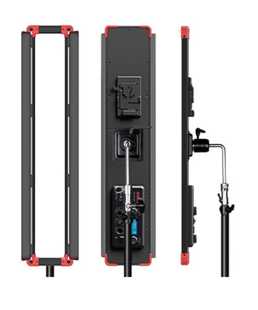 PL-E90L se napaja z baterijami V-mount ali Gold mount ali širokim vhodom DC 11–36 V, zato je vsestranski za delo v studiu ali na terenu. Priložena kovinska loputa z dvema kriloma omogoča natančno oblikovanje svetlobe, panel pa je lahek in prenosljiv, kar ga naredi idealnega za namestitev kompleta za intervjuje s tremi svetilkami.