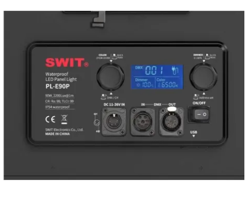 SWIT PL-E90P 3KIT vključuje tri napredne 90-vatne vodotesne LED-plošče, od katerih ima vsaka 480 SMD-LED-diod, nameščenih na robovih, in tanek, prenosni dizajn, optimiziran za uporabo na terenu in v studiu. S SWIT-ovo lastniško tehnologijo 90° svetlobnega vodila in laserske pike te plošče zagotavljajo visoko intenzivno, enakomerno porazdeljeno osvetlitev z minimalnim bleščanjem. PL-E90P oddaja 2200 luksov na 1 meter, pokriva kot svetlobnega snopa 70° in podpira delovanje z dvema barvnima temperaturami, ki se lahko gladko nastavljata od 2700 K do 6500 K.