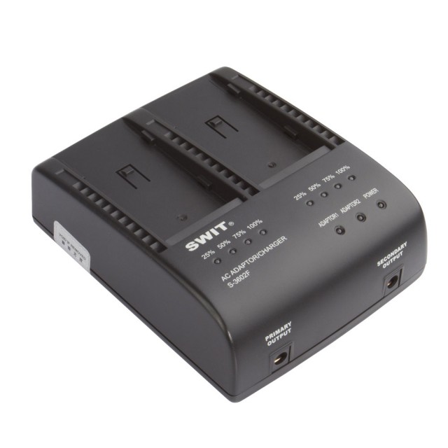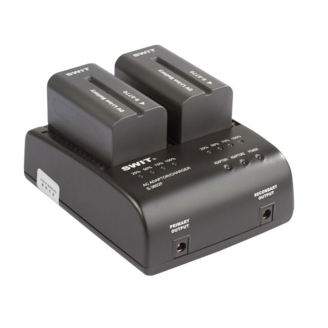 S-3602F je dvokanalni polnilnik za SWIT S-8972, S-8970, S-8770 in združljiv z baterijami SONY serije L NP-F970/770 DV.